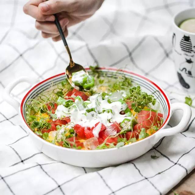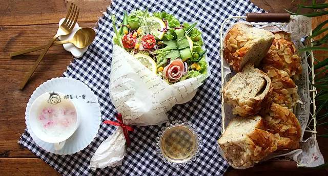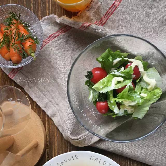 明明就是一盘普通的沙拉,可是配上这个小清新的盘子,还有餐布……啊啊啊,可以开店啦~