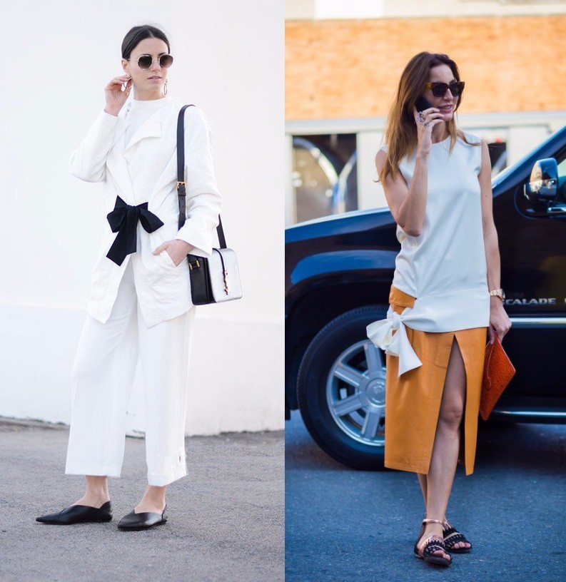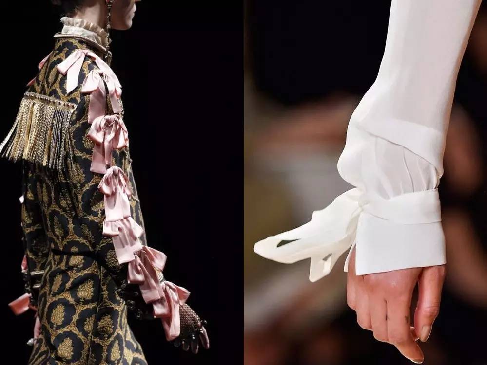 本季,有的蝴蝶结是衣服本身自带的,而有的则是为了搭配效果特意用绳子或者丝巾打出来的蝴蝶结,再或者是一些细节的装饰。