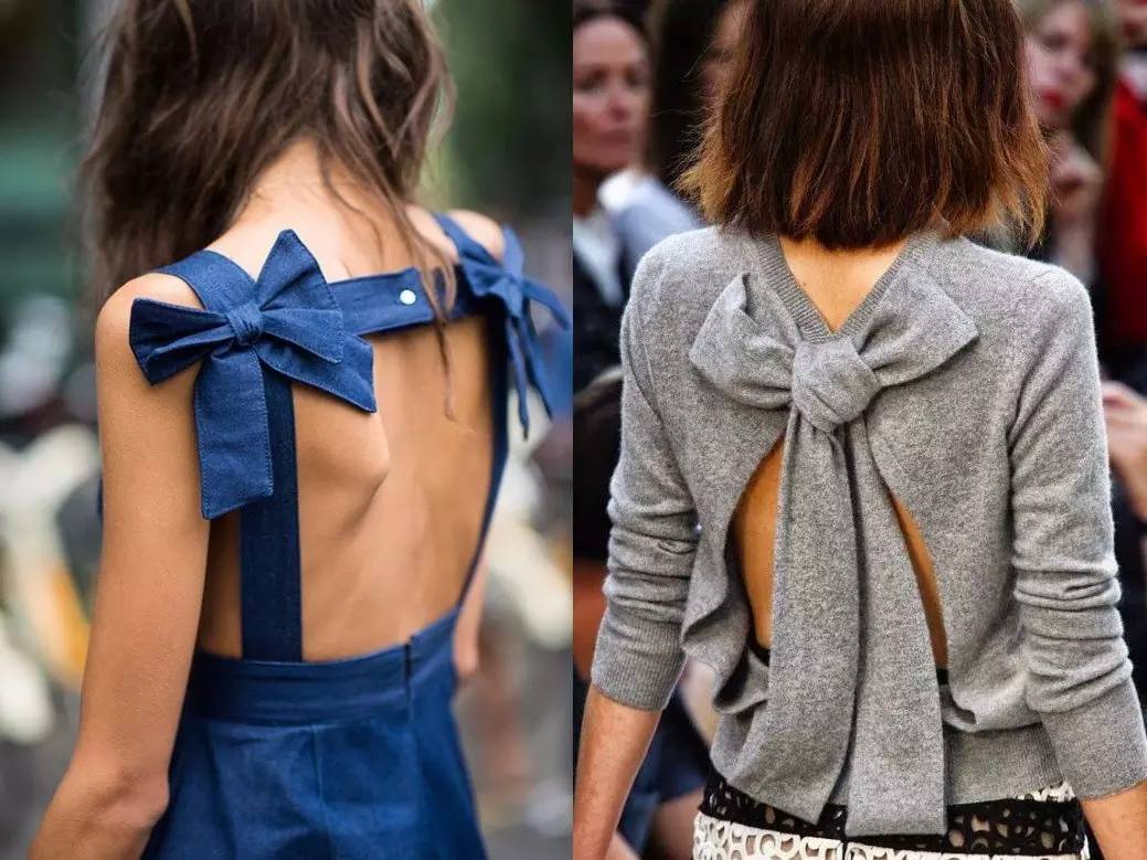 像是这种背面有蝴蝶结的,系在衣服的最下面,其实对于身材的要求很高,但是这种的反而却是今年蝴蝶结单品中最抢眼的一种。
